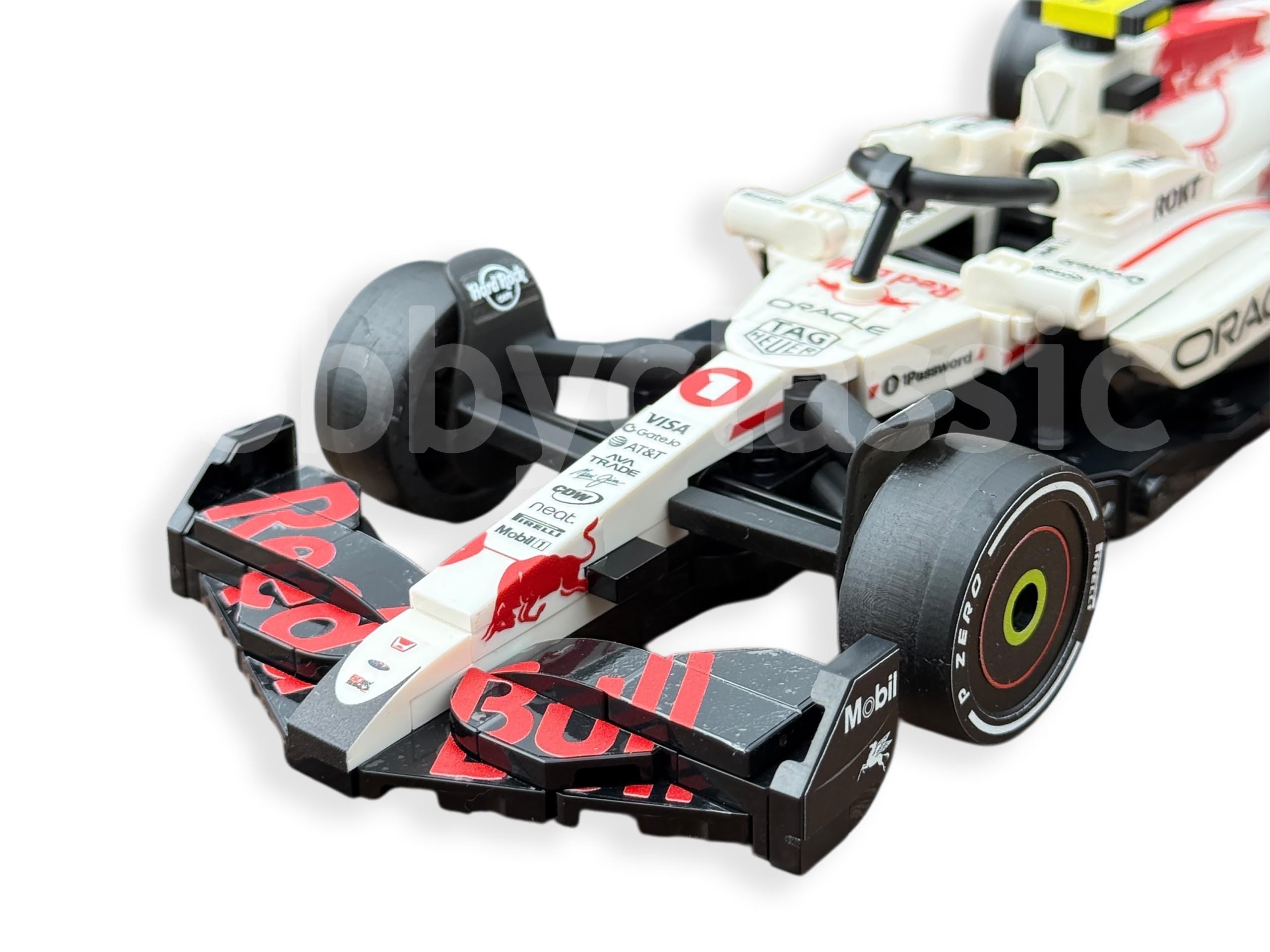 Die cut sticker sheet with transparent base for 1/25 scale MOC Bricks models. Includes full detail decoration of the car in question. It is recommended to handle the stickers with tweezers and try not to bend them. Heat can be applied to them to adapt them to the curves, like the helmets.